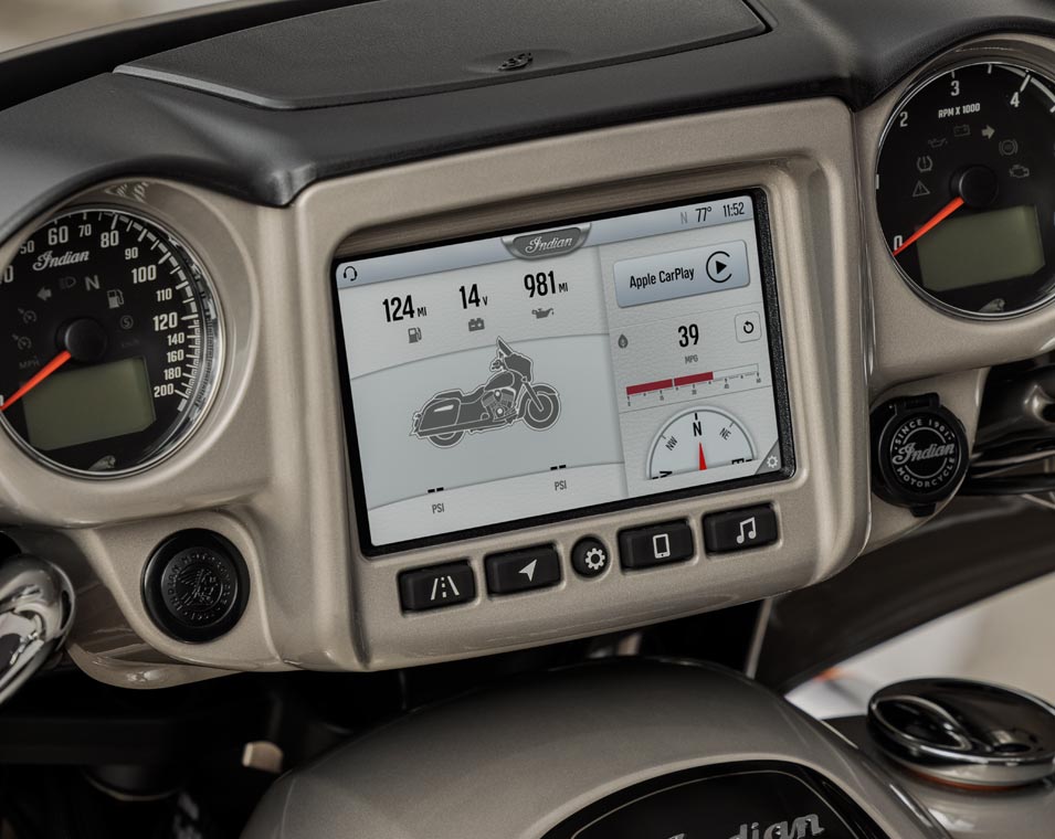 Apple CarPlay®を統合したRIDE COMMAND搭載7インチタッチスクリーン、パワーウィンドシールド、ハイウェイバー、ビニールローグシート、グリップヒーター、調整可能助手席フロアボード、65リットルを超える収納、リモートロック式ハードサドルバッグ&トランク、選択可能なライドモード、リアシリンダー停止機能、ABS、クルーズコントロール、キーレスイグニッション、100ワットオーディオシステム(AM / FM, Bluetooth, USB, Smartphone互換入力)、12V充電ポート
