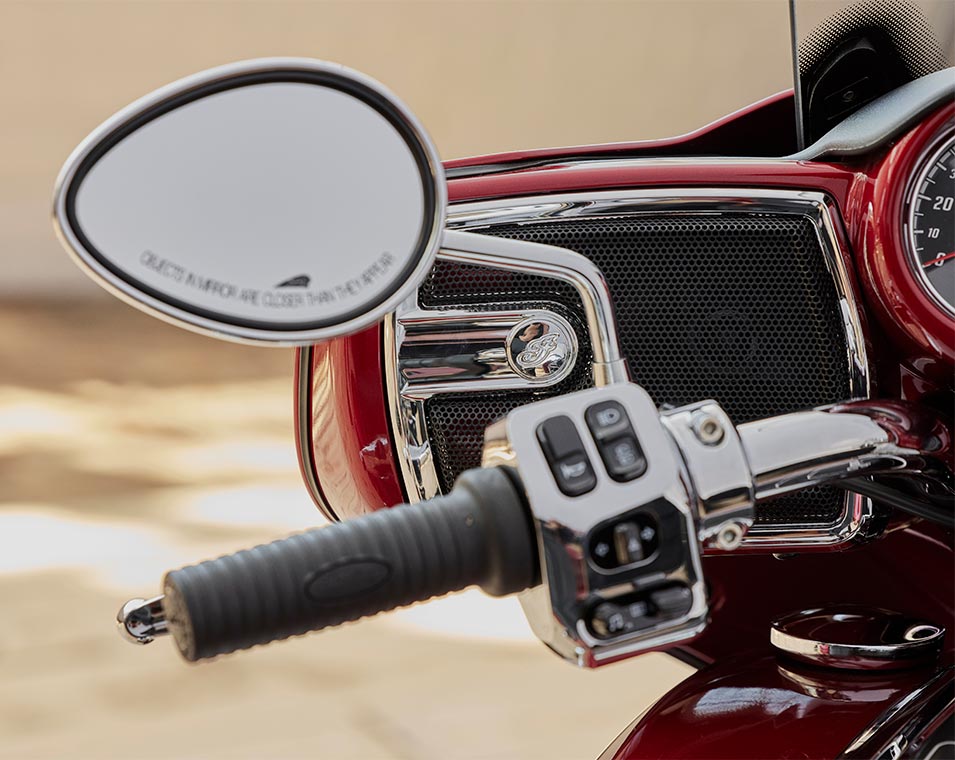 標準装備 | Apple CarPlay®を統合したRIDE COMMAND搭載7インチタッチスクリーン、パワーウィンドシールド、ハイウェイバー、ビニールローグシート、グリップヒーター、調整可能助手席フロアボード、65リットルを超える収納、リモートロック式ハードサドルバッグ&トランク、選択可能なライドモード、リアシリンダー停止機能、ABS、クルーズコントロール、キーレスイグニッション、200ワットオーディオシステム(AM / FM, Bluetooth, USB, Smartphone互換入力)、12V充電ポート |