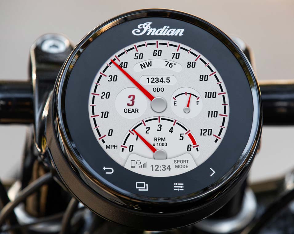スピードメーター、タコメーター、オドメーター、燃料計、コンパス、外気温計、ギアインジケーター