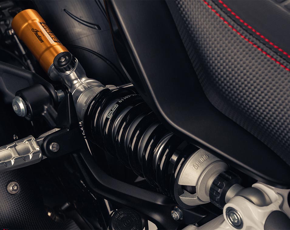 サスペンション: フロント - タイプ/トラベル | ブラックOhlinsフルアジャスタブル倒立テレスコピックフォーク - 120 mm |