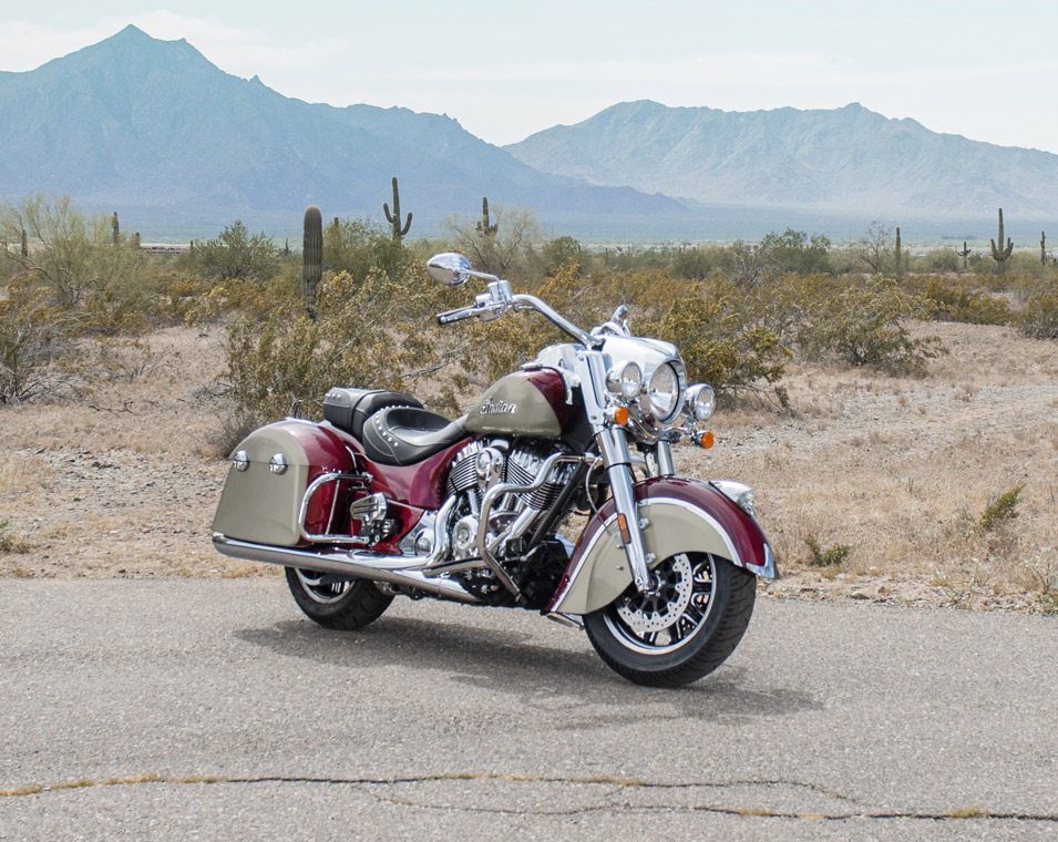 | 標準装備 | クイックリリース・ウインドシールド、リモートロック式ハードサドルバッグ、ハイウェイバー、ライドモード、ABS、クルーズコントロール、キーレスイグニッション、インディアン®スクリプトタンクバッジ、12V充電ポート |