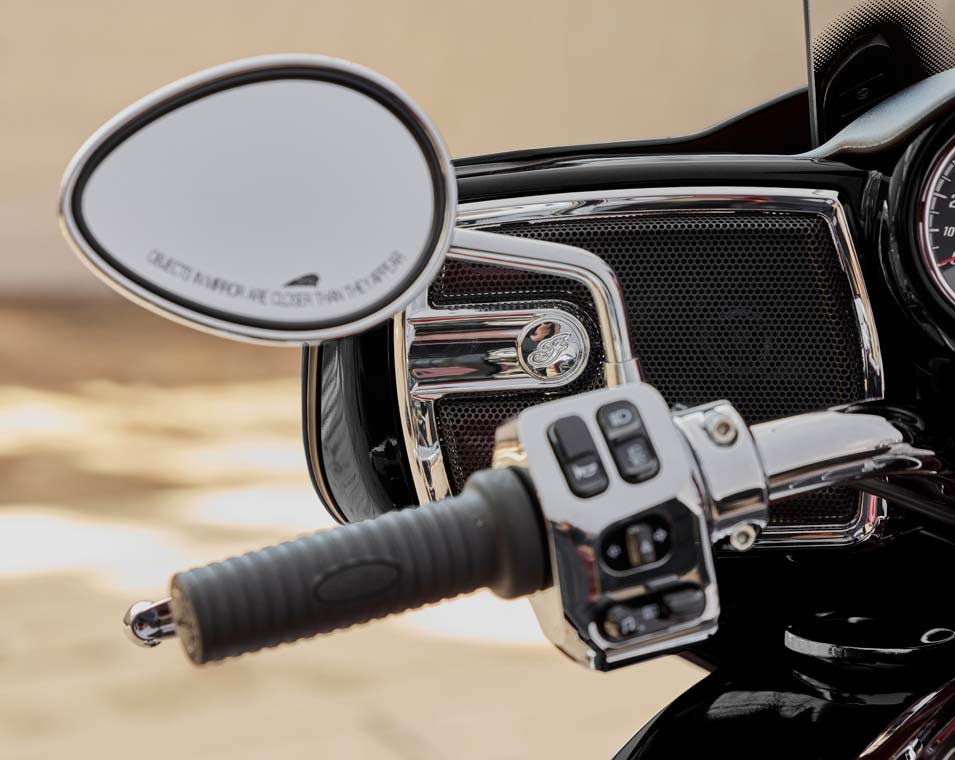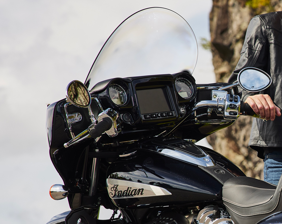 標準装備 | Apple CarPlay®を統合したRIDE COMMAND搭載7インチタッチスクリーン、電動フロントガラス、ドライビングライト、ハイウェイバー、合皮シート(ライダー/同乗者セパレートヒートコントロール)、グリップヒーター、アジャスタブルパッセンジャーフロアボード、36.2ガロン収納、リモコン付ハードサドルバッグ&トランク、ライディングモード選択可能、リアシリンダー停止、ABS、クルーズコントロール、キーレスイグニッション、AM/FM、Bluetooth®、USB、スマートフォン対応入力、ウェザーバンド付200Wオーディオシステム、12V充電ポート |